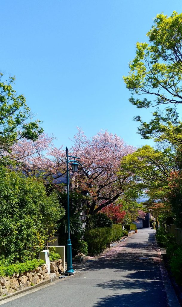 cherry blossoms over the green hedge 生垣の上に桜 芦屋市六麓荘町 4月5日撮影